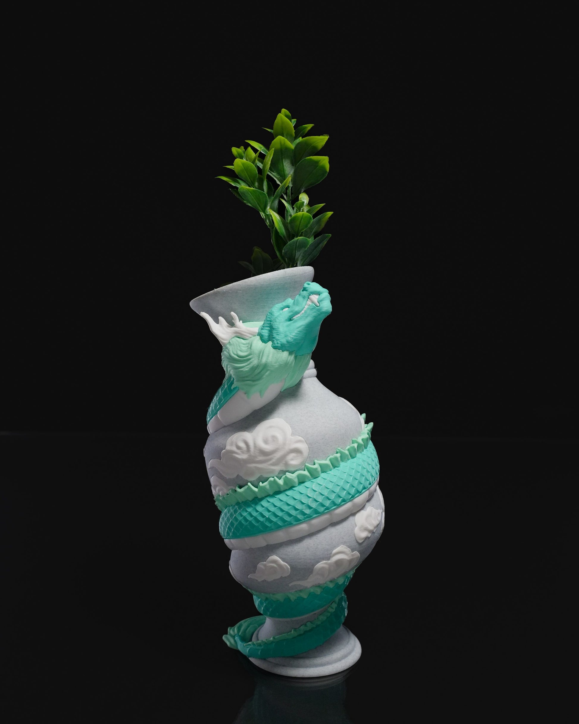 Drachenumwickelt Vase / Weiß