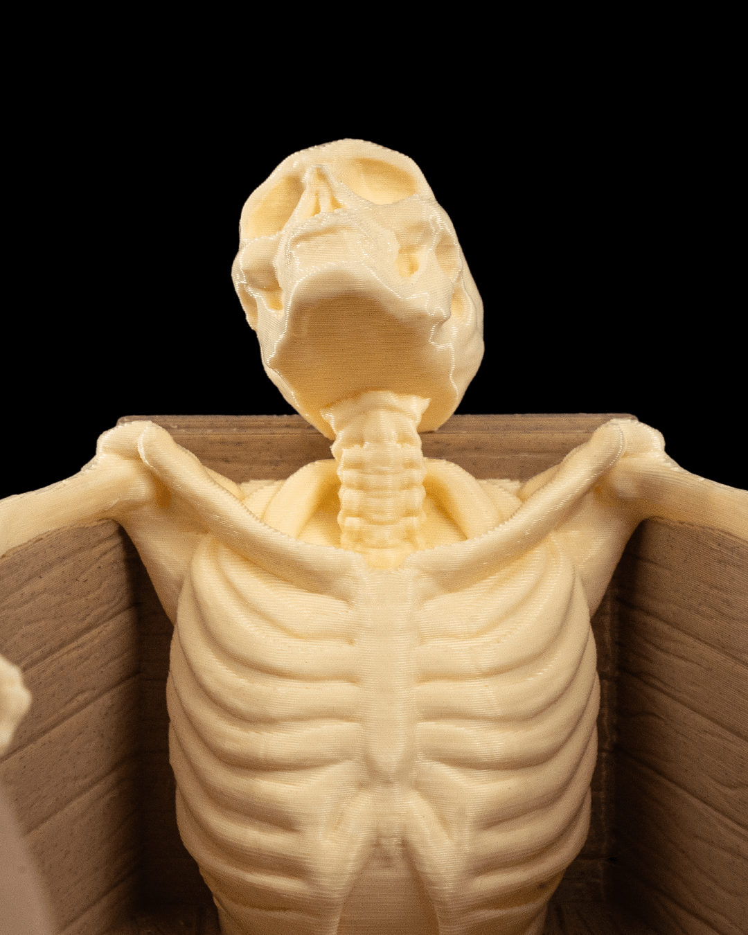 Nutze ihn als Snack‑Schale (verpackte Bonbons, Mini‑Süßigkeiten, Nüsse) oder als stimmungsvolle Deko für Skelett‑Fans