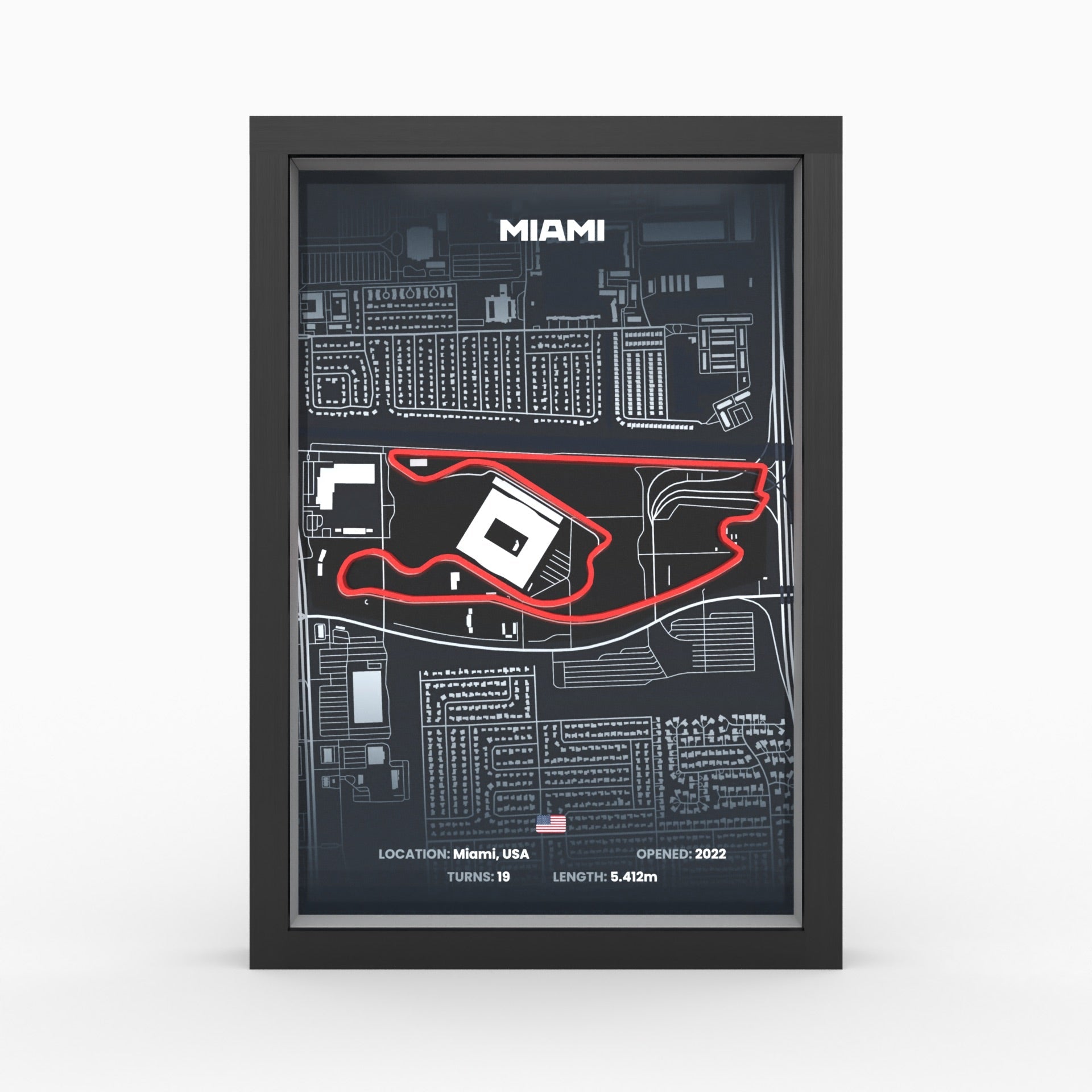 Dieses 3D-Poster verbindet moderne Technologie mit traditioneller Handwerkskunst und bietet eine beeindruckende Darstellung des Miami International Autodrome, die jedes Zuhause oder Büro bereichert.