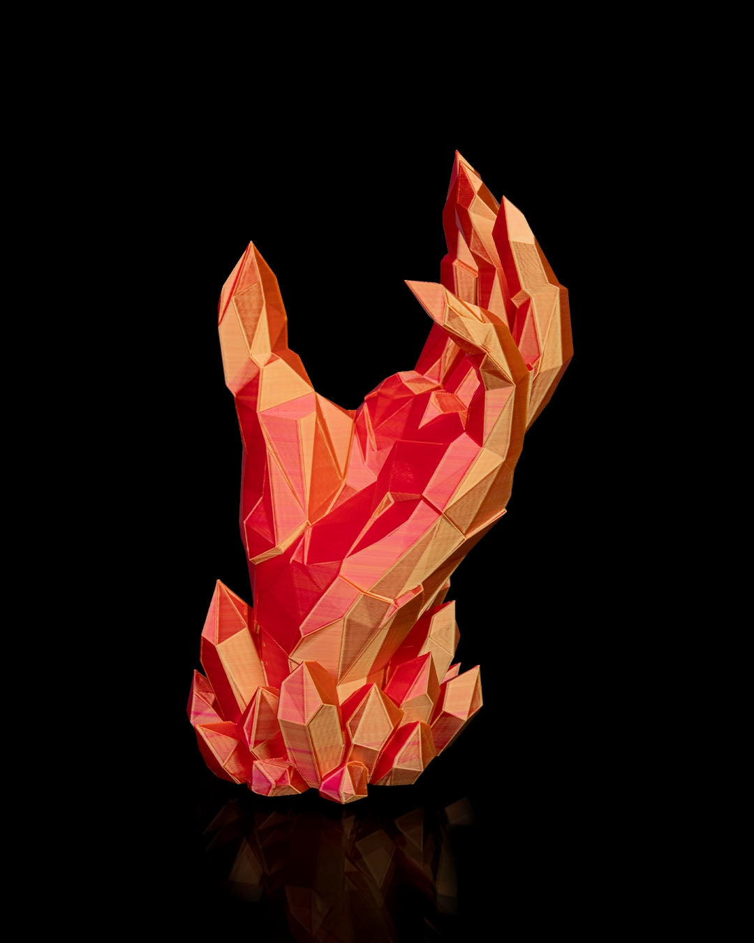 Kantige Linienführung: Die scharfkantigen, fast fragmentierten Formen geben dem Halter seinen „Shardcore“-Charakter, der wie aus zerbrochenem Glas oder Kristall wirkt.